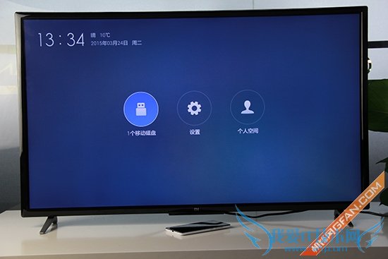 此外除了传统电视功能外,MIUI TV版还支持很多其他功能,比如在主界面按菜单键便可以调出菜单选项,在菜单中可以查看通知信息、对主界面图标进行编辑,以及直接进入设置界面。此外,在主界面还可通过移动光圈来进入到状态页面,在此页面用户可以快速进行网络设置以及查看自己的个人空间,如果你插入U盘,状态页面还可快速进入U盘界面。