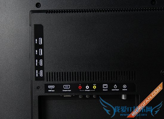 电视的后面包含了很多东西,不过与小米电视二代一样,该有的卡槽小米电视2 40英寸一个都不会少(除了SD卡槽)。USB2.0和3.0接口、HDMI接口,VGA接口、AV输入端子、网线接口、音频输出接口以及电视信号输入接口等都位列在电视后背的左下角,并且各个插孔的位置都和小米二代一样。