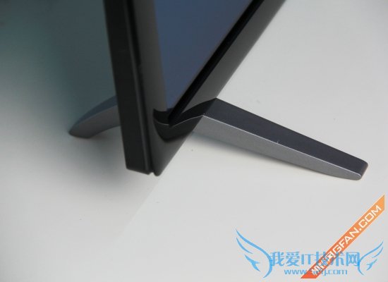 电视正面看上去真的非常干净,除了底部的Logo之外就再没有其他的多余的设计。电视底部是触摸式的操作按键,平时找不到遥控器的时候可以使用底部按键应下急。相比较小米电视二代,小米电视2 40英寸在电视支架上做了点小改变,“V”字形的铝合金支架设计看上去要比二代的支架平稳的多。