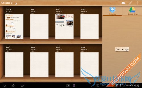 制作完成后,我们除了将笔记保存到本地之外,还可以将笔记分享到新浪微博、facebook或者是保存到本地之外,还可以一键分享到Dropbox和Google Drive中,这样一来可以有效的防止笔记丢失,也可以快捷的同步到其他设备上。