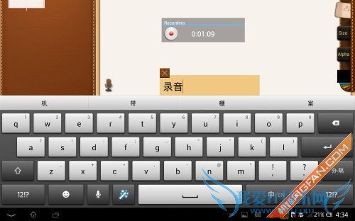 在编辑栏的左下方有一列图标,我们除了手写编辑之外,还可以添加录音笔记,只要点击一下麦克风的图标,屏幕中就会出现一个Recording的录音框,录制完毕后我们只要点击一下红色的按钮,就搞定了,这时我们在配上文字注明一下录制的内容,使用起来非常的方便。