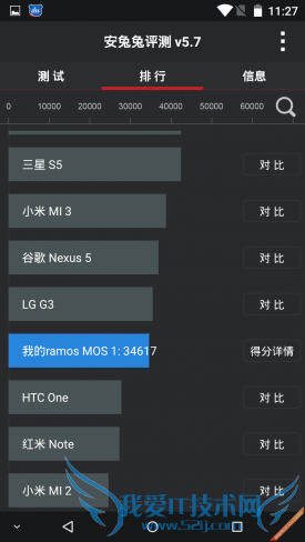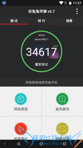 安兔兔跑分(AnTuTu Benchmark)是一个专门给Android系统的手机、平板电脑硬件跑分的软件,它能一键运行完整测试项目,通过内存性能、CPU整数性能,CPU浮点性能、2D、3D绘图性能、数据库I/O、SD卡读、写速度等多项性能测试,并对手机的整体和单项硬件性能做出评分,同时上传分数并查看该设备在世界的排名。