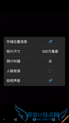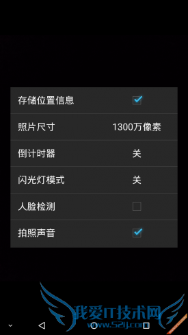 通过点击快门上方的小圆圈,可以呼出相机的功能模式,在其中我们看到蓝魔MOS1可以开启HDR、前置摄像头切换以及设置按钮,而进入设置菜单之后,我们可以在其中选择自动人脸检测、倒计时拍照、闪光灯开启/关闭等等选项,虽说功能不多,但各个都很实用。