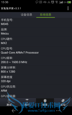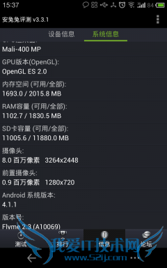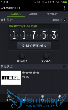 安兔兔系统评测AnTuTu Benchmark是一个专门给Android系统的手机、平板电脑硬件跑分的软件,它能一键运行完整测试项目,通过内存性能、CPU整数性能,CPU浮点性能、2D、3D绘图性能、数据库I/O、SD卡读、写速度等多项性能测试,并对手机的整体和单项硬件性能做出评分,同时上传分数并查看该设备在世界的排名。经过几轮的测试,MX2 TD版最终得分为11753。