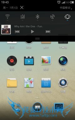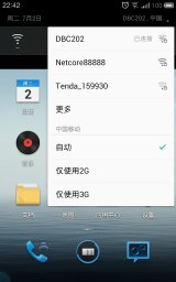下拉菜单是根据消息的提醒数来不断变化高度,只有五个快键按键,不过常用的功能都有,右上角的网络选择是较为特别的功能,可以快速选择自己所需网络,非常人性化。