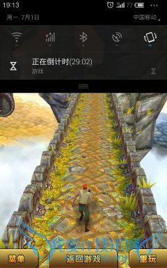 在游戏测试环节,笔者未选择大型游戏,而是选择大家常玩的跑酷游戏——神庙逃亡2来测试。测试半小时电量由77%降至66%,共消耗11%电量。