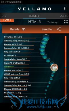 Vellamo是一个基准测试应用,它可以让你对手机浏览器的性能及稳定性进行测试,包括像Java脚本性能、渲染、联网和用户界面等。该工具 的结果同样包括多个子项,但我们只取总成绩,分数越高则表明手机对浏览器的优化程度越高,网页浏览体验更好。魅族MX2 TD版 HTML5得分1251,Metal得分430。