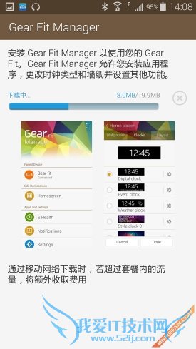 打开手机蓝牙功能并与三星Gear Fit进行配对,手机会自动下载配套软件Gear Fit Manager。