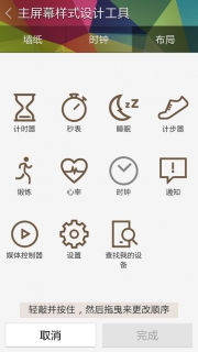 三星Gear Fit的墙纸、时钟、布局等样式的修改都位于主屏幕样式设计工具中,当您在手机软件端对这些设置进行调整后,三星Gear Fit上会自动进行快速同步,实时性很强。