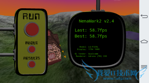 Nenamark2是一款测试手机3D性能的软件,该软件主要着重测试手机GPU性能。三星Note3在Nenamark2上得到了59.5fps的分数,LG G2的得分为58.7fps。