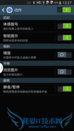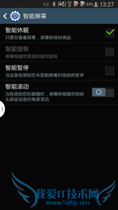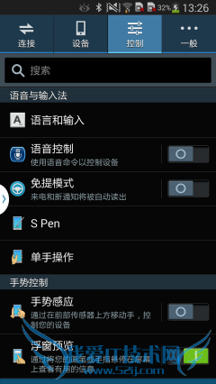 不过通过这四大项设置菜单,我们也找到了一些新功能。比如控制项目里面的所有设置都是针对人机交互体验方面的。三星一向在人机交互方面做得非常棒,包括手势感应、动作、手掌动作等功能都得以保留。此外,在三星GALAXY S4手机上首次出现的Smart Scroll眼球滚动翻页、Smart Pause智能暂停以及Smart rotation智能旋屏功能也都在Note3上出现了,被统一被设置在了智能屏幕功能里面。