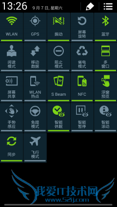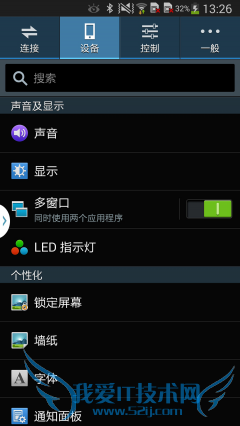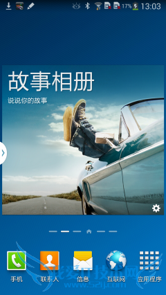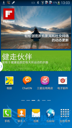 进入系统后,可以感受到强烈的TouchWiz风格,5屏桌面、3D切换特效、各种丰富的桌面插件。进入设置菜单,发现Note3和S4一样,设置菜单分为了四大类,每个项目内都有相关的内容但是内容比较复杂,想到找到自己想要的设置项短时间内很难适应。