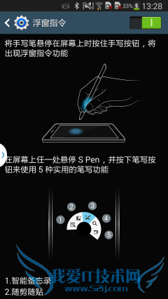 S Pen的扇形功能列表