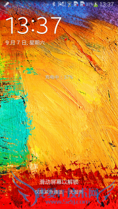 解锁方式一直是三星手机比较新潮的一个体现,在三星GALAXY S3应用了水波纹解锁,GALAXY S4使用了类似“光晕”的解锁方式,而这一次GALXY Note3采用了更加新潮的水彩特效,只要手指在屏幕上滑动,屏幕就会出现水彩在水中扩散的特效,看起来非常绚丽。而且Note3的屏幕支持“隔空操作”,即使手指不直接接触,在屏幕上方1cm处划过也会有相同的特效。