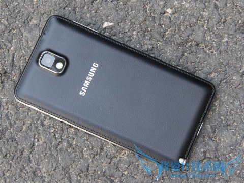 机身背面是三星GALAXY Note3手机设计的一大亮点部分。当时发布会结束后国内大部分媒体都把三星Note3的后盖材质描述为皮革,随后三星公关公司出面进行了解释,事实上此次三星Note3应用的是仿皮革纹理设计的塑料材质,在手感上非常接近皮革材质,因此在触感上比普通塑料手感要好很多。但是缺点也是显而易见的,三星Note3采用的这种仿皮革纹理设计的塑料材质非常容易沾染细微的毛线纤维物质,而且极其不易清除,对于有洁癖和强迫症的用户来说这是一件很难接受的事情。