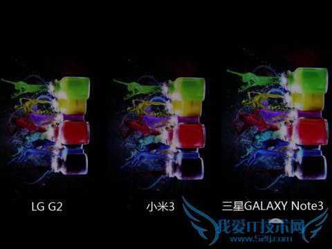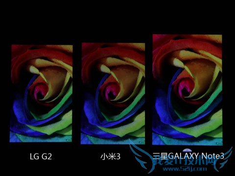 而在显示多彩图片时,可以明显感觉三星GALAXY Note3的颜色要比另外两款产品鲜艳得多,在视觉上可能会更容易讨好用户,但是Note3在显示玫红这类亮色系的色彩时会有图片“过曝”的感觉。