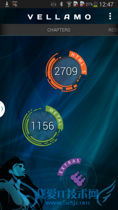 Vellamo作为一种手机网页标尺工具,如今已扩展至包括两个主要模块。HTML5模块可用来评估移动网页浏览器性能,而Metal模块可对移动处理器的CPU子系统性能进行测量。测试套件点击即用,方便快捷,分模块进行管理,Vellamo可对滚动缩放,3D图形,视频性能,内存读写,带宽峰值性能等诸多方面进行评估。测试结果三星Note3 HTML5部分得分2709分,METAL部分得分1156;LG G2的HTML部分得分2927,METAL部分得分1084。