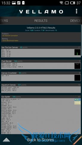 Vellamo是由Qualcomm(高通公司)开发的一个基准测试应用(类似于Neocore),它可以让你对手机浏览器的性能及稳定性进行测试,包括像Java脚本性能、渲染、联网和用户界面等。该工具的结果同样包括多个子项,但我们只取总成绩,分数越高则表明手机对浏览器的优化程度越高,网页浏览体验更好。