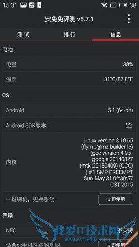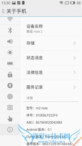 打开魅蓝note2的关于手机界面还是比较惊喜的,该机搭载了基于Android 5.1深度开发的Flyme 4.5,得益于Android 5.0的优秀特性,可完美释放64位处理器性能。