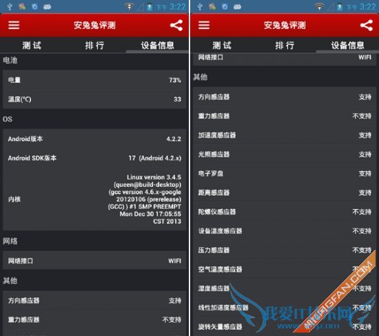 安兔兔是一款专门给Android设备的手机评分的软件,目前最新版是V4.0版,新版的安兔兔能够一键完成,UE测试(多任务与虚拟机)、CPU整体性能测试、RAM内存测试、2D/3D图形性能测试以及数据存储I/O的性能检测。通过安兔兔评测,你可以获得设备的单项与整体得分,借此判断硬件的性能水准。安兔兔得分:17106。