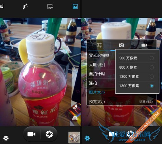 拍摄:前500万、后800万像素