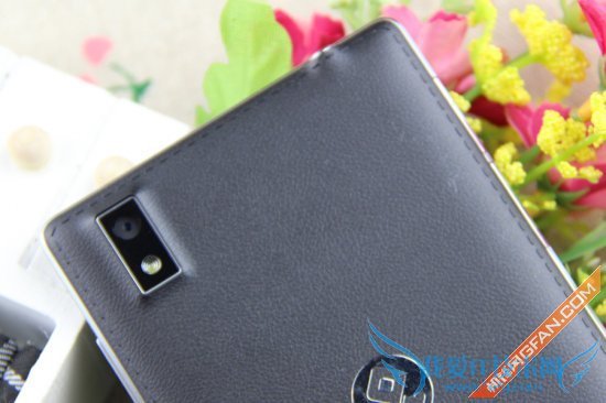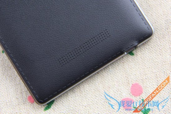 大Q手机Q1的机身背面设计非常独特,采用一体式的类皮革塑料材质,不论是外观还是质感都极具商务的气息。在后盖上端是后置800万像素的高清摄像头,配备一枚单LED补光灯;后盖下方是这款手机的网格状独立扬声器。