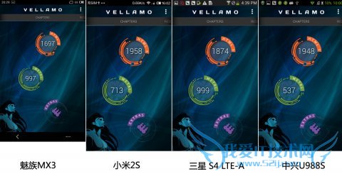 为了验证魅族MX3能否学到三星GALAXY S4的功力,我们用几款软件测试一下。同时我们还选择了四款不同品牌、不同处理器的机型进行测试,几款处理器都是各品牌顶尖级别的处理器。