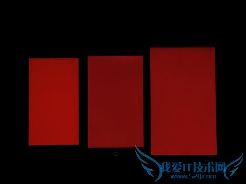左侧为iPhone5,中间为MX2,右侧MX3。三部手机调整为各自的最大亮度。