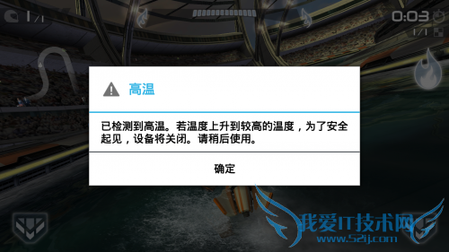 单纯的跑分,只是让我们了解手机的一些理论性能,而真正的性能与兼容性需要实际游戏体验才能知道。不过在测试游戏时,手机出现了故障,在测试第一款游戏《激流快艇2》时,系统发出“过热保护”提示,随后Geak Mars便进行了死机状态,对于小编来说,第一次遇见这种问题。