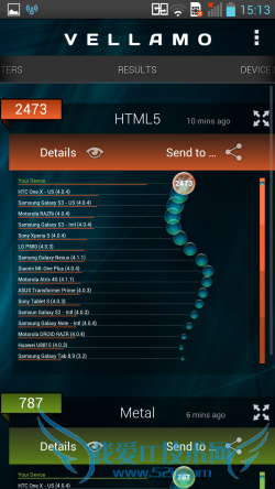 Vellamo是由Qualcomm(高通公司)开发的一个基准测试应用(类似于Neocore),它可以让你对手机浏览器的性能及稳定性进行测试,包括像Java脚本性能、渲染、联网和用户界面等。该工具的结果同样包括多个子项,但我们只取总成绩,分数越高则表明手机对浏览器的优化程度越高,网页浏览体验更好。