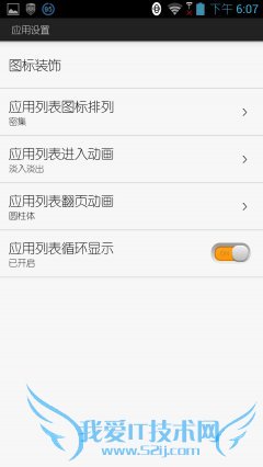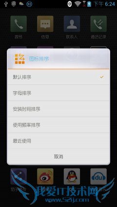 在联想K900的应用界面中按屏幕下方的选项键也会弹出一个小菜单,可以进行图标的排序、隐藏以及应用设置。图标排序很好理解,这里我们也就不多做解释了。图标隐藏其实就是将一些我们不希望别人看到的应用图标进行隐藏,勾选隐藏之后的图标会从应用界面中小时,除非用户在之后取消勾选。当然,像应用界面以及桌面的滚屏风格同样也可以在应用设置进行调整,单以应用列表翻页动画为例,就有十余种不同的动态过度可以选择。