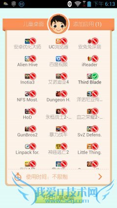 输入乐安全密码后可在儿童模式/访客模式中最多禁用10个应用