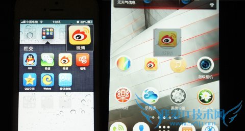 因为采用了1080P(1080×1920)全高清分辨率,所以联想K900的屏幕细腻度的确完胜iPhone5,大家可以看到被放大之后的iPhone5图标已经略见齿痕像素点,不过联想K900的图标却依旧圆润。虽然联想K900屏幕在色彩还原方面与iPhone5相比尚有不足,但是细腻度方面却明显优于iPhone5。