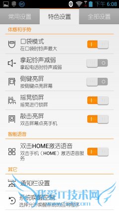 联想K900中也有一些独特功能。例如在设置界面中的特色设置菜单就能开启一些独特功能。这些功能包括了一些基本的体感手势操作。摇晃锁屏与敲击亮屏让手机的操作变得更有趣味性。另外,联想还新增了一个屏保功能,它是类似于PC和平板上的屏保模式的功能,如果长时间不操作K900的屏幕,它是不会直接熄灭的,而是进入屏保的状态。不过虽然这些功能都很亮眼,但是其整体的实用性却并不是很高,对于用户来说都是一些新奇但却并不常用的功能,最后只能落得一个有了占内存,没有无所谓的尴尬境地。