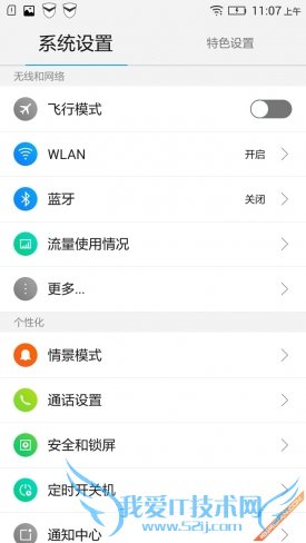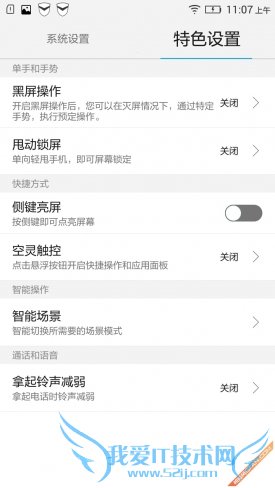 打开系统设置之后,我们可以看到除了有一个我们熟悉的系统设置菜单之外,还拥有一个特色设置菜单,用户可以通用左右滑动在两个设置界面中进行切换。选择特色设置之后,我们看到其中共有六项特色设置,接下来就让我们一一来为大家讲解。