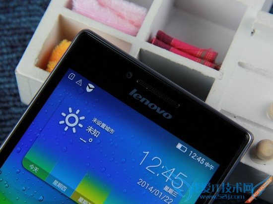正面额头部位还是采取了所有智能手机的标配,中间听筒,左侧前置摄像头以及右侧感应器群。不过值得一说的是,联想P70-t听筒靠左侧的位置隐藏了一枚指示灯,只有手机在充电或者有信息未读时该指示灯才会亮起。