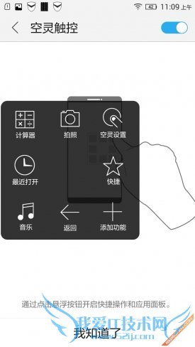 这项功能单从名字上来说有点吓人,但在了解了这项功能之后,我们发现其实它就是类似悬浮球的功能,在点开悬浮球之后,我们看到在其中包含了诸如计算器、拍照、空灵设置、最近打开、音乐、返回、快捷打开应用以及增加等八项主要的功能。