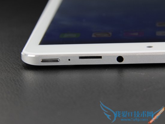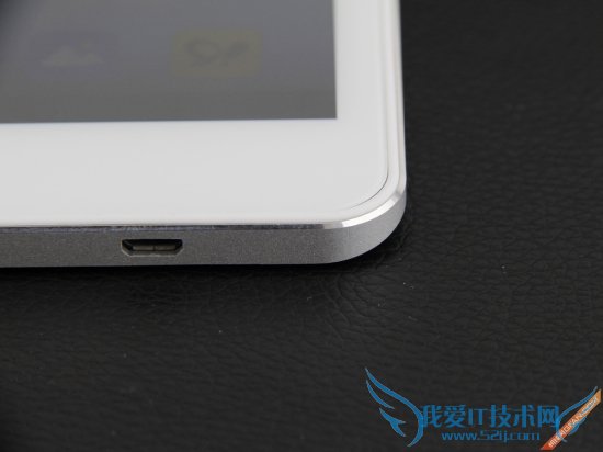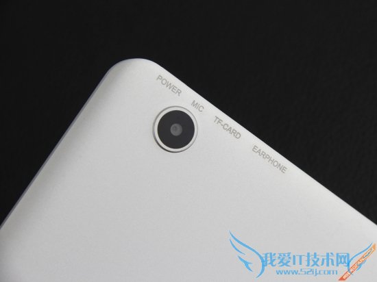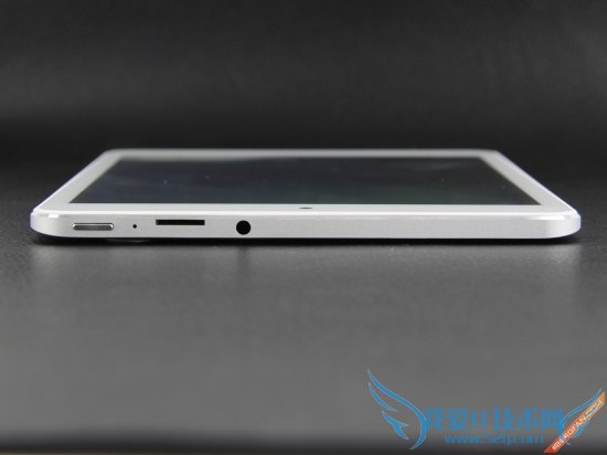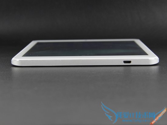 IMINI N79厚度仅为6.9mm,可以说是非常薄,同时整机350g的重量让长时间持机时也不会感到累手。同时IMINI N79将简洁的设计也带到了机身侧面,左右两侧均无任何按键。平板下方偏右的地方是Micro USB接口,而电源键、麦克风、TF扩展卡槽以及3.5mm耳机接口则位于机器上端右侧。机身四周采用了金属切割工艺增加平板的美观程度,实际上手后,金属切割边框在光照下反射出的金属光泽感觉非常提神,对于整机的整体气质也是提升不少。