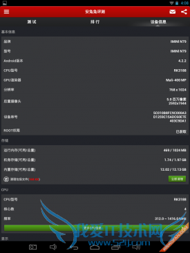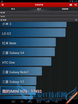 IMINI所才用的是基于A9架构的RK3188四核处理器,主频为1.6GHz,同时搭配1GB内存。从理论数据上来看,IMINI N79应该是能够满足日常用户的所有需要了,但理论终究只是理论,实际使用中表现又会如何呢,我们还是先通过跑分测试来看一下IMINI N79的性能表现。