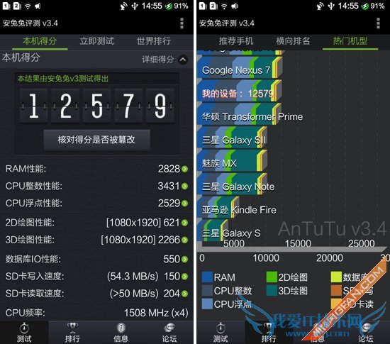 通过以上安兔兔测试,可以看到这款卓普大黑C7的最终得分是12579。在热门机型排行中,与谷歌nexus7D 成绩持平,整体表现比较出色。