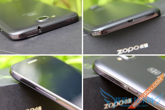 最后,我们来看一下卓普大黑的机身细节和接口,它的机身三围是164.3×84.3×9.2毫米、重129克,机身的按键接口非常丰富。顶部是3.5毫米耳机孔,底部是Micro USB数据口(支持OTG外接扩展),左侧是音量调节安静,右侧是锁屏/电源按键。