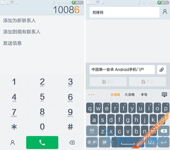 卓普大黑C7的拨号界面和短信输入界面都采用了小清新的设计理念,整体给人简单易操控的感觉。系统内置的输入法能够支持全键盘、九宫格、手写三种输入方式,相比IOS系统显得非常人性化。