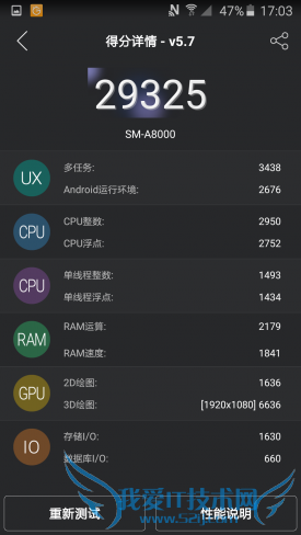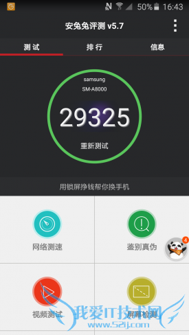笔者手中的A8在安兔兔下跑出了29325分的成绩,算是该级别比较主流的性能分数了,应付日常的使用和休闲娱乐完全足够。而笔者使用的这段时间确实也对这台A8的体验有着不错的印象,滑动流畅,进入应用程序也比较迅速,动画效果出色。尽管在应用开到非常多时确实会有一定的迟滞感,但是考虑到普通用户的使用习惯,以及三星自带的清理功能,A8的整体性能确实还是能很好的满足用户需求的。