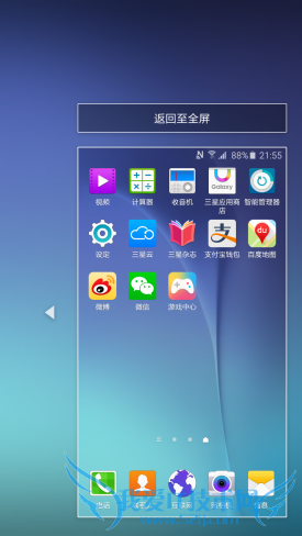 A8的TouchWiz系统还有着一些隐藏的特色功能,如使用手机时双击HOME键在任何状态下可以快速打开相机,长按HOME键可以打开三星S语音助手,三击HOME键可以开启单手模式,并且可以选择左右手模式,非常简便实用,比较遗憾的是不能再自定义小界面的尺寸。
