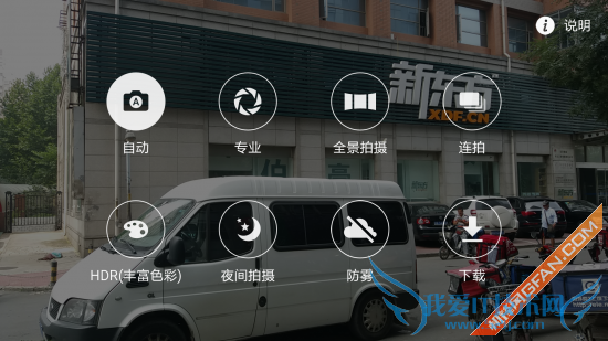 拍照功能方面,A8开启相机的反应非常迅速,这点甚至很接近S6,确实在这一点上首先赢得了笔者对它相机的好感,用户体验良好也是相机整体实力比较强的一个标志,拍摄界面比较简洁,功能都可以在界面上清楚的看到,我们还可以选择”自动“”全景“”专业“”HDR“等模式。