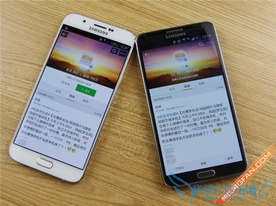 虽然从参数来看与三星上一代Note系列旗舰Galaxy Note3类似,但是从对比图来看就能发现A8的调色更准确一些,在显示白色的时候色彩更纯净,整体观感绝对的旗舰级水准。看来三星在调教Super AMOLED的屏幕方面越发成熟,不过在手机亮屏时屏幕的黑边还是略宽了些,这算是一个小小的遗憾吧。