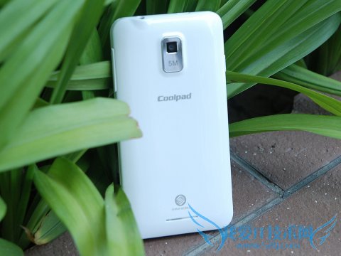 该机背部采用了大弧度曲面,通过设计四个方向弧形曲线而使其更符合人体工程学,让用户在使用该机时,机身后壳可以更好的贴合手掌。另外,该机的后壳采用了白色钢琴烤漆材质,带磨砂珠光效果,不过唯一缺点就是比较容易沾染指纹。顶部中央则是一枚500万像素摄像头,较为遗憾的是酷派并未为其配备LED补光灯。在机身底部则是中国移动的LOGO以及外置扬声器。