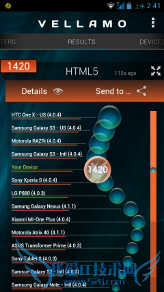 酷派8190Q在Vellamo上的得分则为1420,虽然其整体得分略低于三星GALAXY S3,但不可否认它的表现也还算不错。