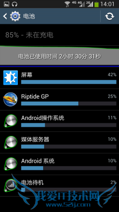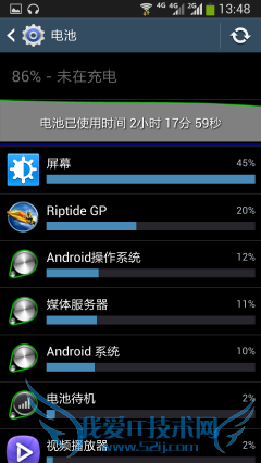 总的来说,三星GALAXY Note2 N7108D的续航能力还是令人很满意的,中度使用的情况下待机2天没有问题。当然,我们还可以通过一些方法来节省电量,比如开启自动屏幕亮度啊、开启省电模式等等。