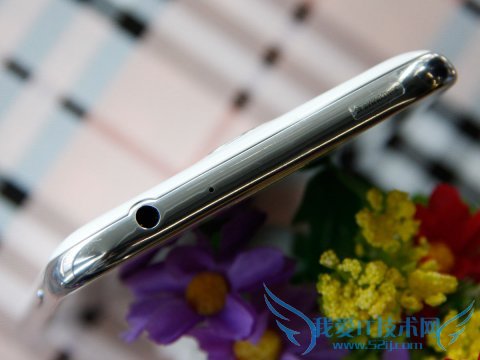 三星GALAXY Note2 N7108D使用了亮面的边框,因此整体会给人一种晶莹剔透的感觉。机身顶部是3.5mm耳机接口、降噪麦克风。底部为micro USB接口以及麦克风,同时还可以看到SPen手写笔的位置。